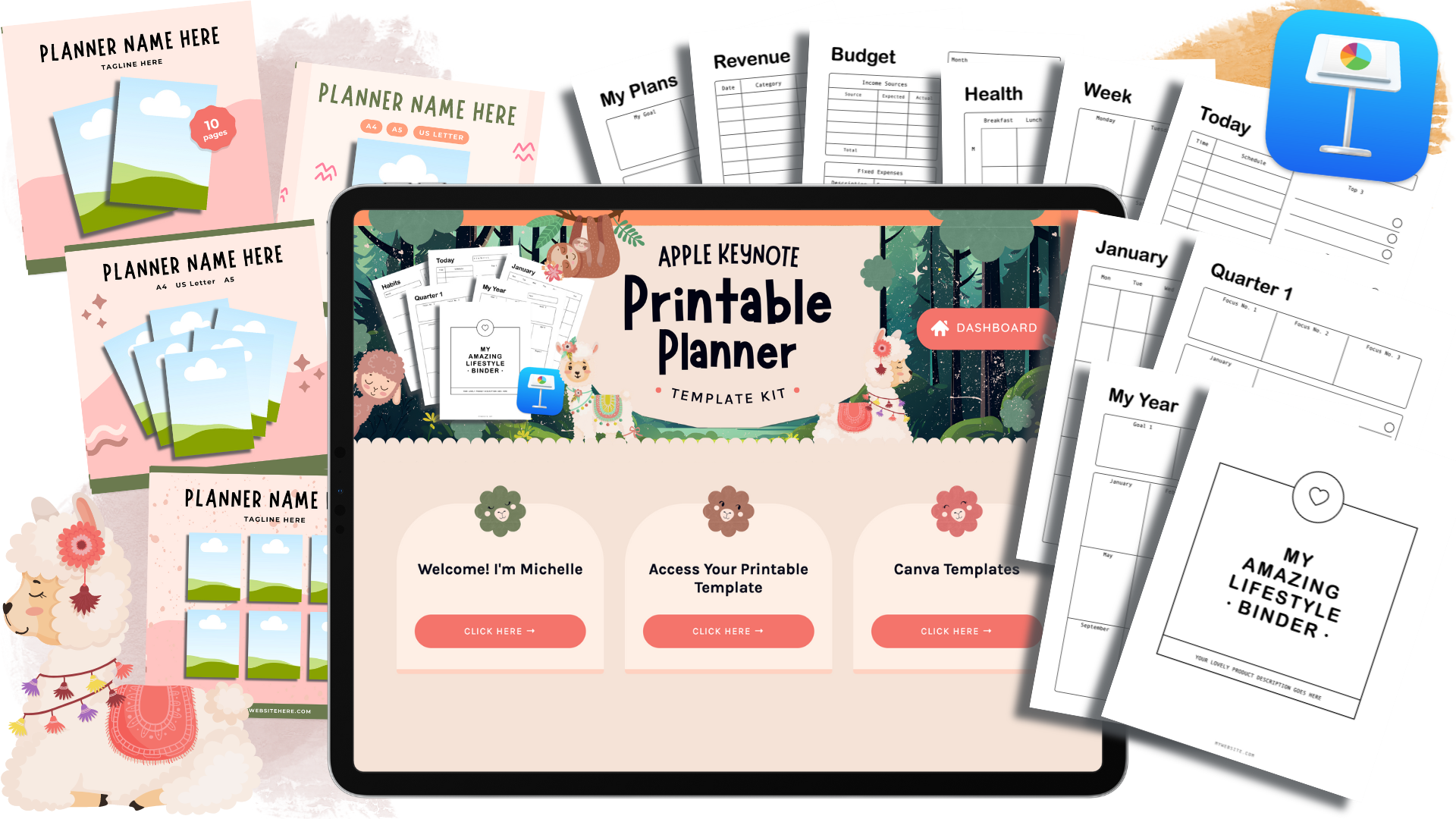 30 Page printable planner template that you can customize on a Mac computer using Apple Keynote.